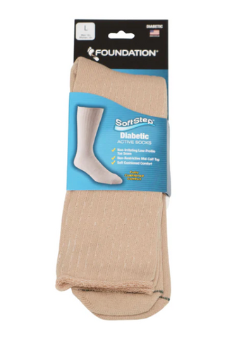 Fully cushioned Athletic-styled socks designed for walking. Specifically designed for those with diabetes or circulation problems. Non restrictive top extends to mid calf. Low profile seam in toe area reduces the risk of irritation. Can be worn with either cushion or smooth side against the foot.