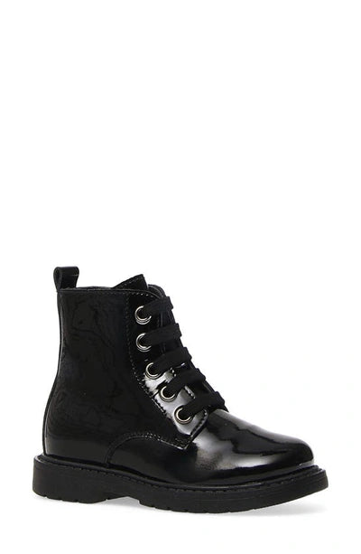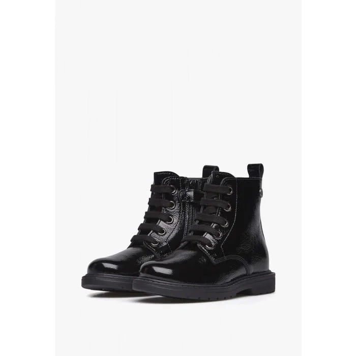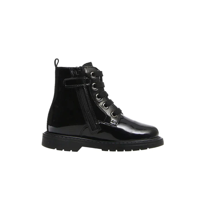 Choose the Naturino Barnett Boot in Patent Leather Beige or Black to complete your child's look with fashionable and practical combat boots.