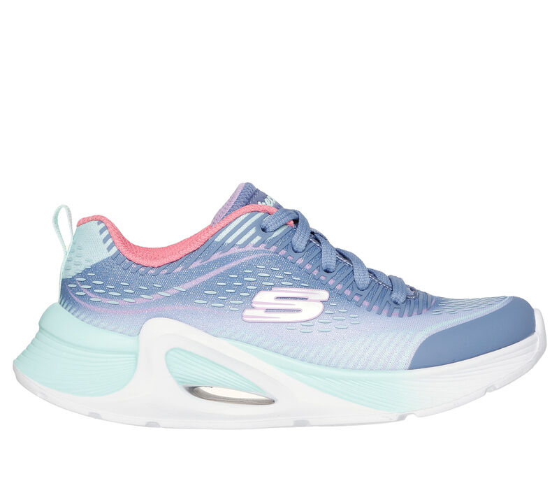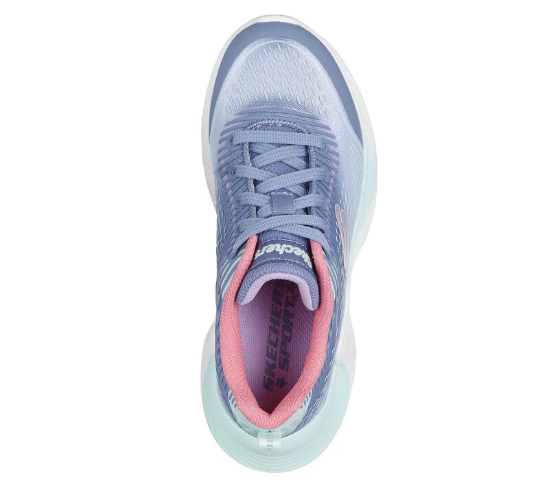 Get active in fun, colorful style wearing Skechers Tide Tech - Bryon Bliss. This sporty lace-up features a printed sparkle mesh upper and a painted midsole with sculpting detail and air window.