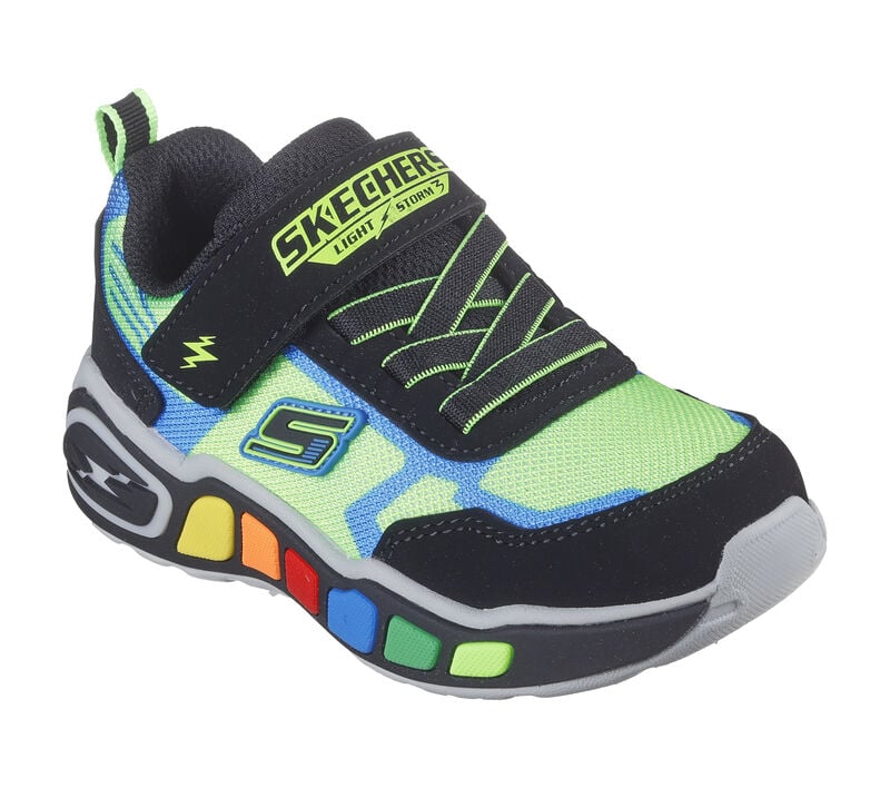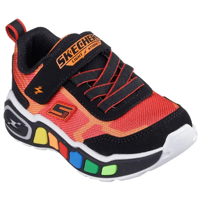 Be the fun in colorful light-up style wearing Skechers Play Scene - Storm Brights. This sporty light-up design features a mesh and synthetic upper with stretch laces, adjustable instep strap, cushioned comfort insole, and a multi-colored light-up midsole tech piece.