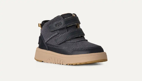 Our Rennie is an easy-wearing sneaker make to keep up with your little one. The upper features a mix of genuine leather and suede detailed with iconic Twin Seams for the look and Feel of UGG®. Two hook-and-loop closures secure the fit while the durable EVA and rubber outsole offers unbelievable flex for kiddos on the go. Lined with a soft textile lining finished with a peppermint-based anti-odor treatment for enhanced freshness, wear after wear.