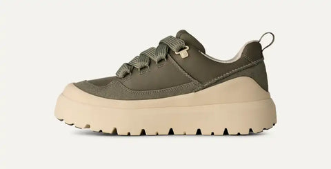 Take on the world in UGG® comfort in our Heritage Utility Sneaker. Channeling old and new, it combines iconic UGG® elements with classic sneaker vibes. The upper features full-grain leather and genuine suede, topped with chunky, round laces. Inside you'll find a soft textile lining and insole from mostly recycled materials, while the lightweight sugarcane EVA outsole features Spider Rubber® Pods for enhanced traction, all year long.