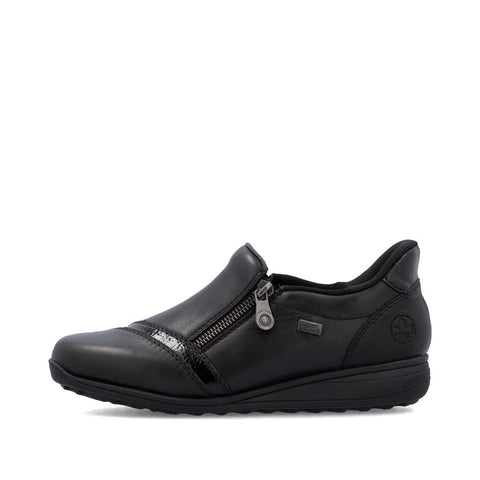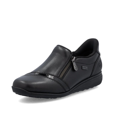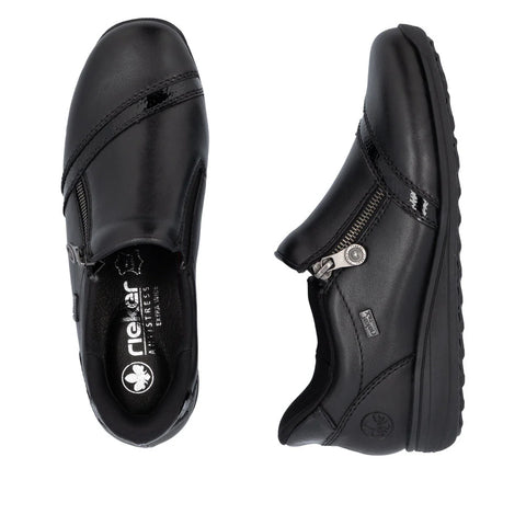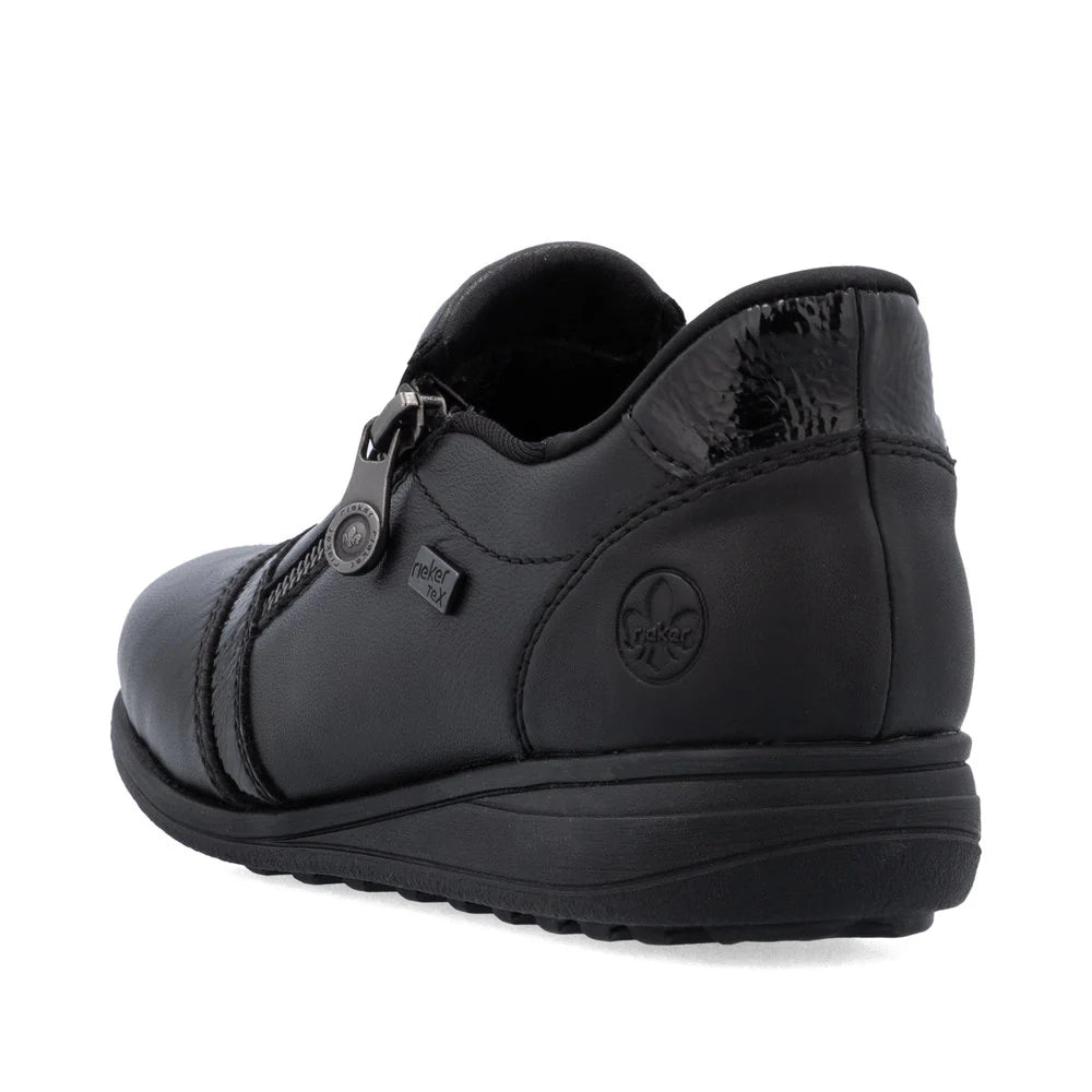 Just slip in and let's go! These Rieker shoes made of smooth leather combine cool design with best comfort and high functionality. The zipper makes the shoe easy to put on and take off. With the grippy sole, sure-footed walking is a matter of course. The padded and removable insole offers comfort and functionality day after day. The extra width gives the toes more freedom of movement. The RiekerTEX membrane provides reliable protection against wind and moisture, while the Ready2GO feature makes it particularly easy to slip into. Just slip into it and feel good!.