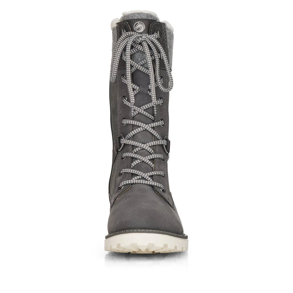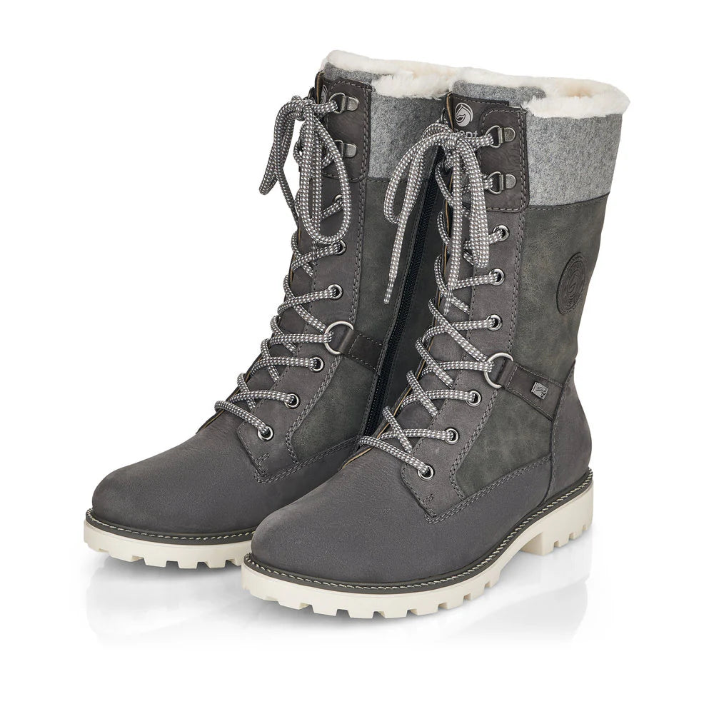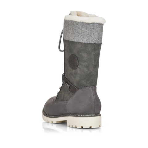 Cold feet are a thing of the past! With these grey Remonte lace-up boots made of suede leather you can show up anywhere! Despite the lacing, the shoe can be easily closed by the zipper. The shaft collar in felt look effectively freshens up the design. The flexible and cushioning sole provides good support. Moreover, the comfort width offers your feet more freedom of movement in the forefoot area. The water-repellent surface of the shoes offers optimal weather protection and the thermal insole features protection against the cold. Cozy and very warm virgin wool makes these boots the perfect companions no matter when, no matter where! True to the motto comfort meets style!