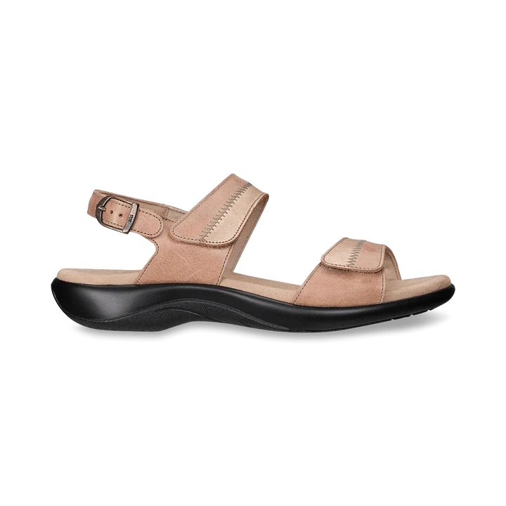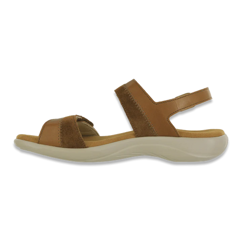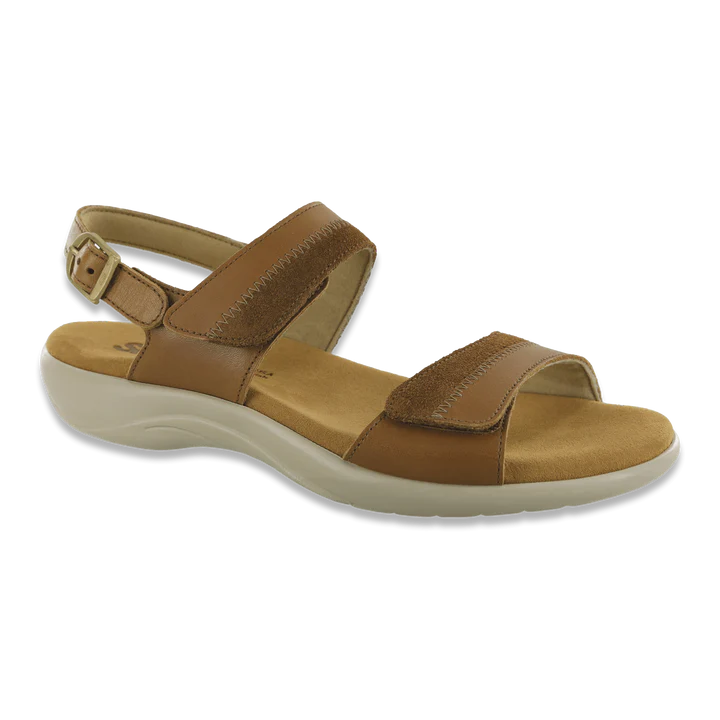 Two-toned leather and decorative stitching give a unique style to these comfortable heeled sandals. A plush, contoured insole covered in soft Super Suede cradles your foot's natural curves and arches. The leather upper is padded for ultimate comfort, and adjustable leather straps let you tailor your fit.