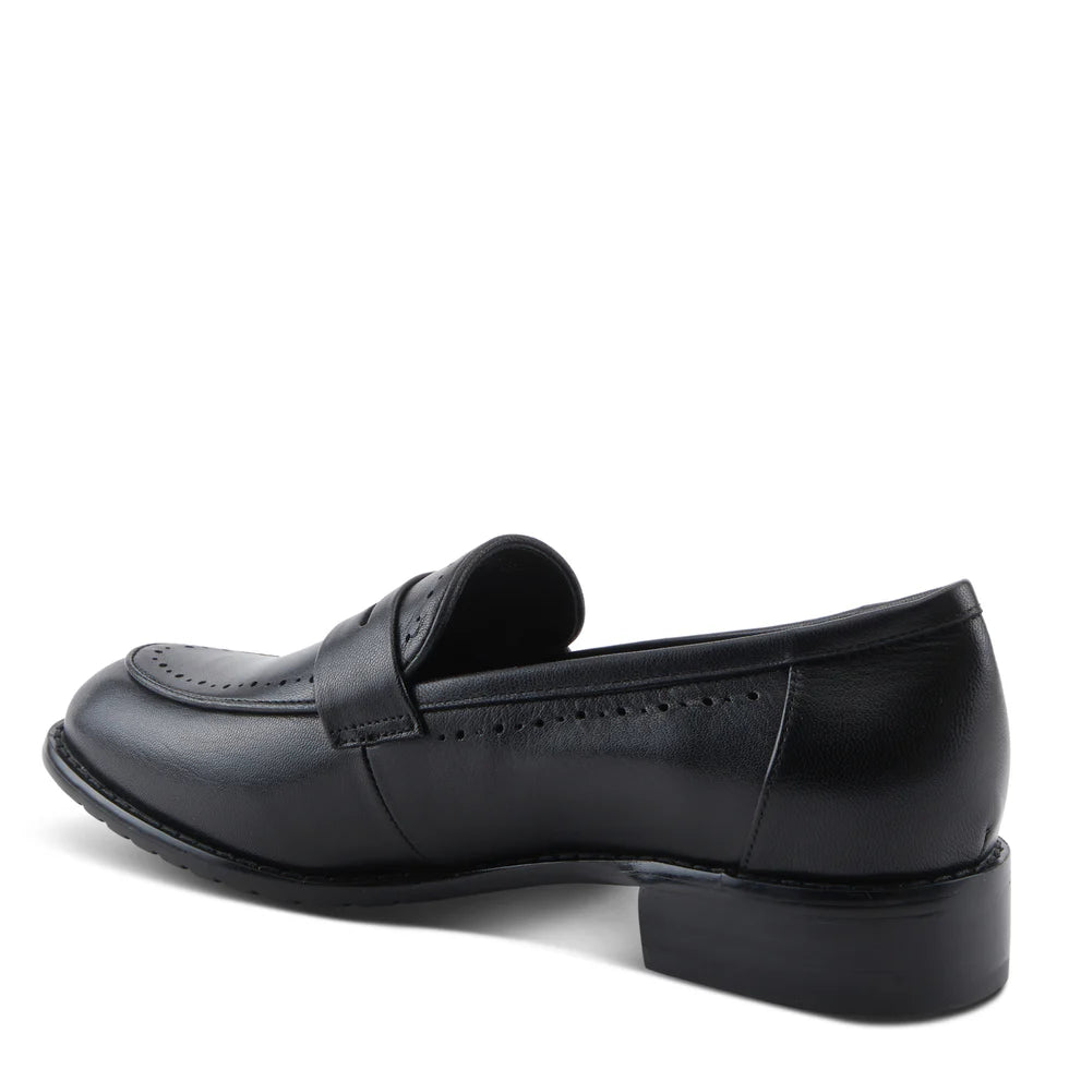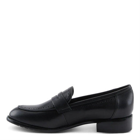 Step into timeless sophistication with a modern take on the classic penny loafer with refined details. Crafted from premium leather, this loafer features delicate perforation accents for a touch of elegance and breathability. The traditional penny slot detail adds a vintage-inspired charm, while the stacked heel elevates its polished appeal. Designed for all-day comfort, it boasts a cushioned insole with arch support and a flexible, slip-resistant outsole for effortless wear. Whether paired with tailored trousers or casual denim, this loafer delivers both versatility and timeless style.