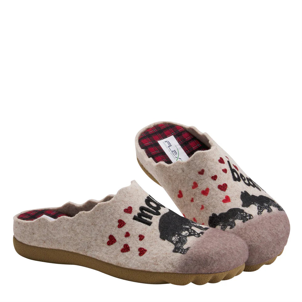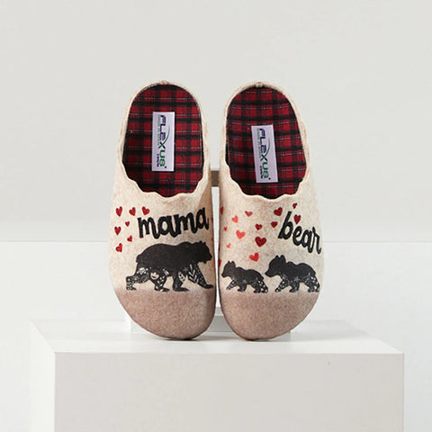 Made with mama bears in mind, these charming slippers are a must for those cozy nights in with the whole family! Classic plaid pattern on the insole. With an indoor rubber sole they are durable for wearing around the house or to run quick errands around town.