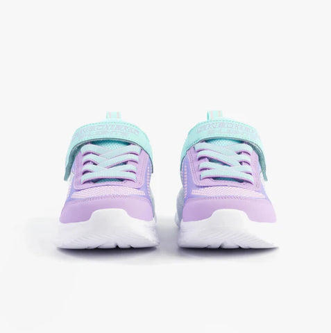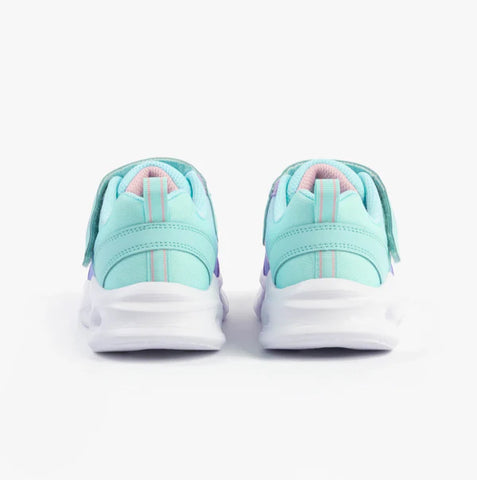 Bring the fun in sporty fashion wearing Skechers S-Lights®: Sola Glow - Ombre Deluxe. This active multi-colored lights design features an ombre mesh and synthetic upper with stretch laces, adjustable instep strap, and well-cushioned light-up midsole.