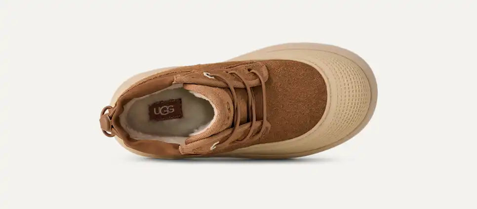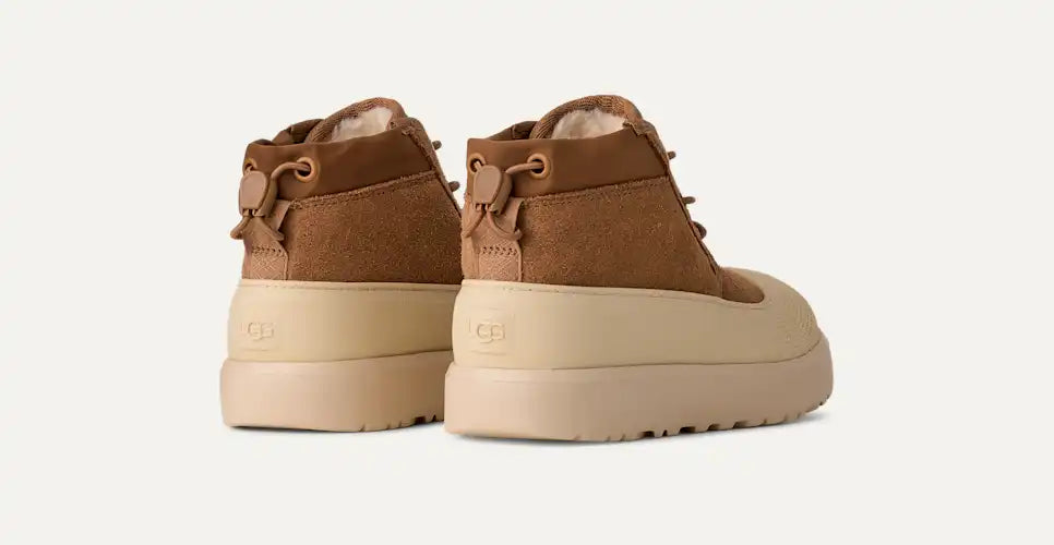 Our iconic heritage chukka, The Neumel, gets a weatherized upgrade with our Neumel Weather Hybrid. A timeless boot made of rich, waterproof suede, it's lined in our UGGplush™ upcycled wool blend and finished with an outsole made from lightweight sugarcane EVA for all-day cushioning and a signature Classic-like feel indoors or out. Turn any day into a mini-me moment with our adult-sized Nuemel Weather Hybrid.