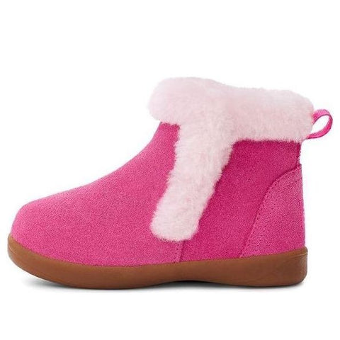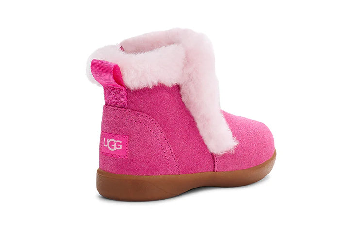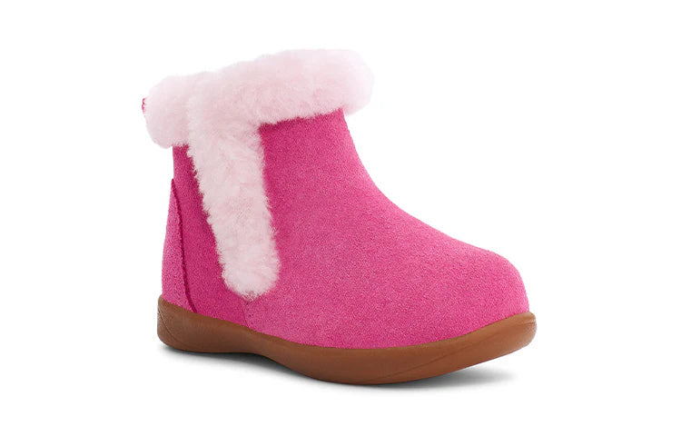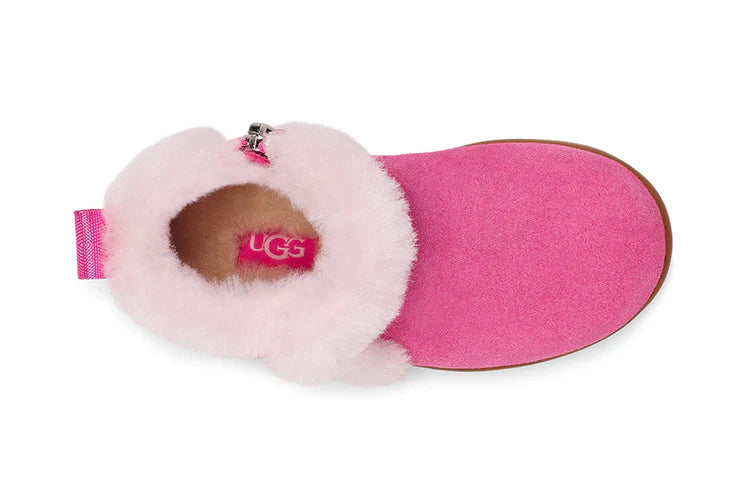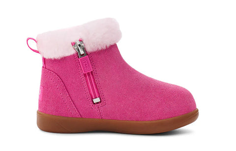 The littlest of feet can enjoy the luxurious feeling of UGG with the Mallya. Made of soft suede with a fluffy collar, it features a medial zipper for easy on-off, plus recycled antimicrobial lining and an UGGplush™ insole to keep them cozy.