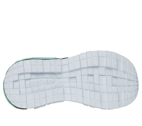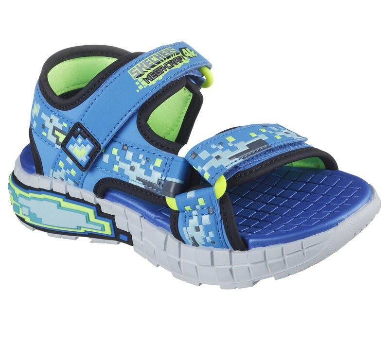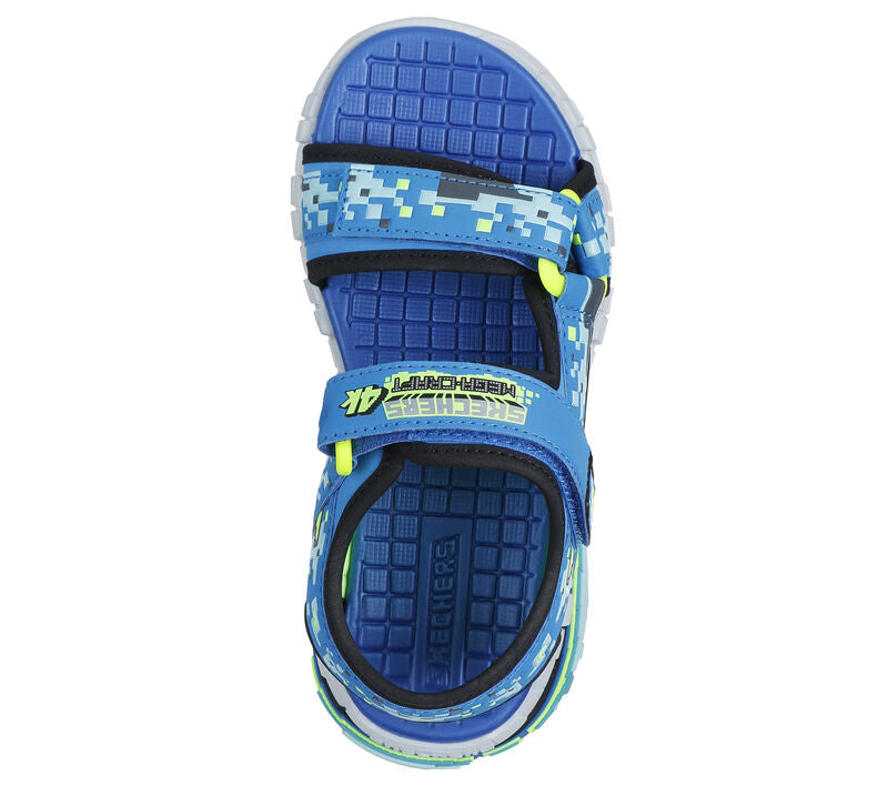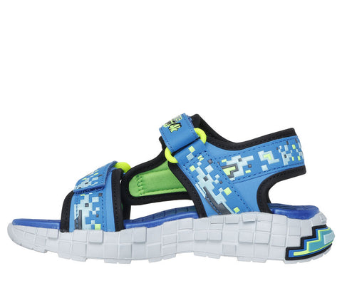 Block-to-block style and sunny-weather comfort pair up in Skechers Mega-Splash 4K. This thematic Mega-Craft® sandal features a synthetic strap upper, Skechers adaptive closure, and a fun tech-piece midsole.