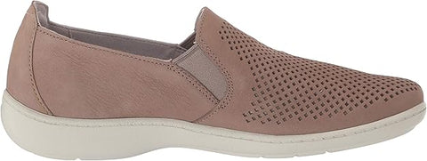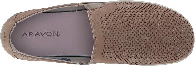 These comfy Aravon slip-on loafers have a padded, removable insole, are made of perforated suede, and are machine washable.