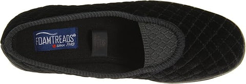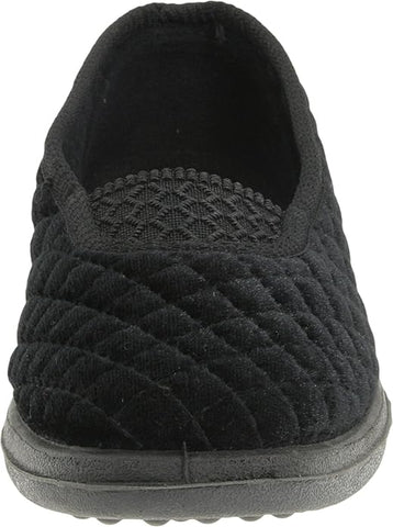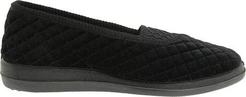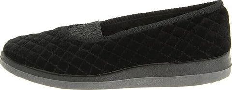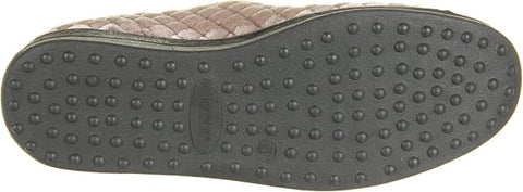 Slip into the Waltz an utterly chic moccasin that puts style in the details. Soft velour or satin upper features quilt stitching. Durable uppers have a high density foam backing to hold slipper shape over time. Triple density natural blown rubber soles for optimum comfort and stability. Hand washable.