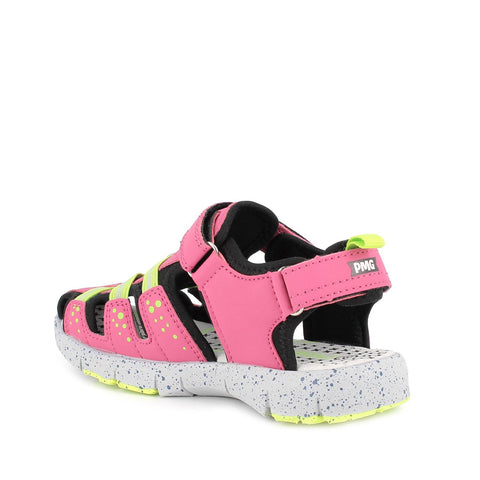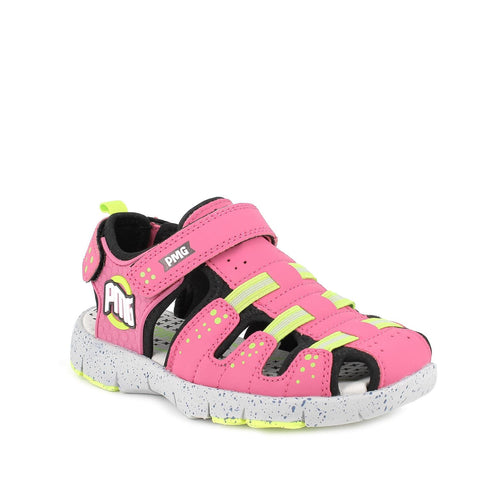 Closed-toe sandals with a technical and gritty appearance. The foot can breathe but at the same time the toes are protected by an enveloping, soft and easily adaptable upper. The leather insole has a soft padding that gives a comfortable support and high cushioning. The sole is very light and has a design specifically made to promote flexibility and traction.