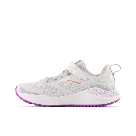Ideal for active outdoor kids, the New Balance Dynasoft Nitrel v5 Bungee Lace features a grippy AT Tread outsole for superior traction on uneven terrain. Designed for trail hikes, these kids’ running shoes have a springy Dynasoft midsole for a responsive and plush underfoot feel that delivers outstanding comfort while the bungee closure lets kids get ready on their own.
