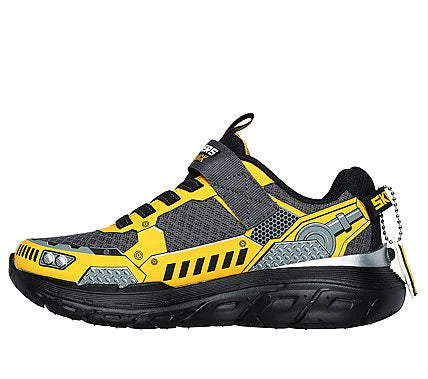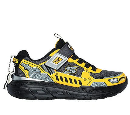 Strap in to machine worthy style and comfort with Skechers Skech Tracks. This playful vehicle themed design features a synthetic and mesh upper with stretch laces, adjustable instep strap, keychain accessory, and a cushioned comfort insole.