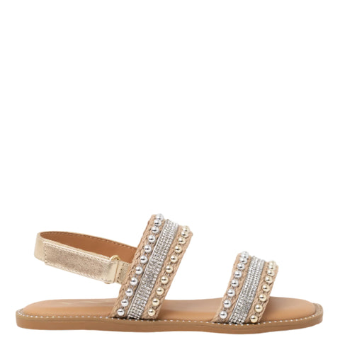 Shine with radiant style in the SUISSA by Nina, a chic flat sandal designed to captivate with every step. Featuring a contemporary square toe and an adjustable hook and loop strap for a secure, customized fit, SUISSA blends fashion with function. The standout details are the shimmering crystal vamp and eye-catching decorative studs, adding a playful sparkle to any outfit. Crafted with durable man-made materials, a cushioned memory foam insole for all-day comfort, and a flexible, non-slip TPR outsole for stability, SUISSA is the perfect sandal for sunny days, special outings, or anytime you want to add a little extra sparkle to your look.